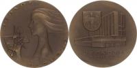 60 Kč neprodáno | Olomouc, Dopravní stavby Olomouc, Kytice květů převázána stuhou s nápisem Dopravní stavby Olomouc, Kytice květů převázána stuhou s nápisem "Za vzornou práci" / Dělník zprava, na pozadí silueta mostu, nápi s "Práci za mír" sign. KRÁL bronz 60 mm PMP-E 16b e tue 0/0 | | |