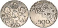 500 Francs 1980 - 150. výr. nezávislosti BELGIQUE KM 161a Ag 510 25 g
