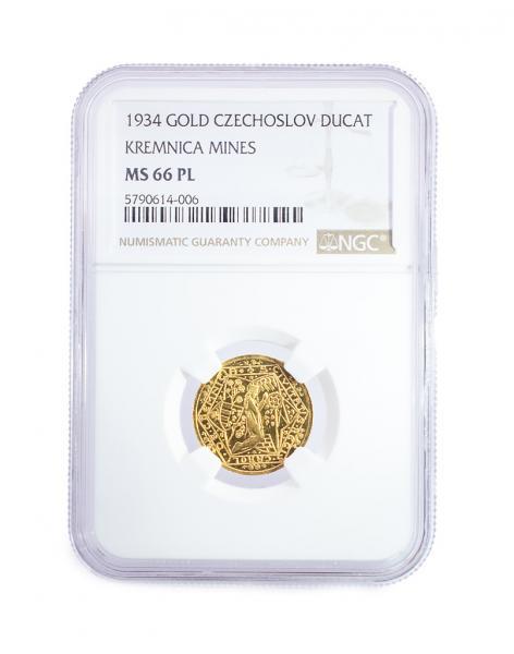 Originál 1 Dukát 1934, Oživení kremnického bánictva, certifikace NGC MS 66 PL. Au 987 (zlato 23,7 karátů) - 3,50 g - 20 mm - vroubkovaná hrana - mincovna Kremnica - velmi vzácná mince - Rarita - náklad pouze 288 kusů !!! - plný ražební lesk v ploše - certifikace NGC = záruka jakosti a pravosti. Jen 7 těchto mincí má vyšší hodnocení !!! Poštovné po platbě předem 390 Kč, dobírka 460 Kč. Poštovné za dobírku požaduji předem. Možnost osobního převzetí a platby v Bílovci.