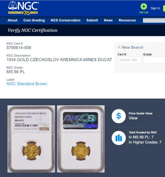Originál 1 Dukát 1934, Oživení kremnického bánictva, certifikace NGC MS 66 PL. Au 987 (zlato 23,7 karátů) - 3,50 g - 20 mm - vroubkovaná hrana - mincovna Kremnica - velmi vzácná mince - Rarita - náklad pouze 288 kusů !!! - plný ražební lesk v ploše - certifikace NGC = záruka jakosti a pravosti. Jen 7 těchto mincí má vyšší hodnocení !!! Poštovné po platbě předem 370 Kč, dobírka 450 Kč. Poštovné za dobírku požaduji předem. Možnost osobního převzetí a platby v Bílovci.