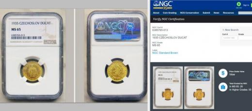 Svatováclavský Dukát 1935 R v certifikaci NGC MS 65. Au 986 (dukátové zlato 23,7 karátů) - 3,49 g - mincovna Kremnica - náklad pouze 13 178 kusů !! - certifikace NGC = záruka pravosti a jakosti. Poštovné po platbě předem 220 Kč, dobírka 290 Kč. Poštovné za dobírku požaduji předem. Možnost osobního převzetí a platby v Bílovci.