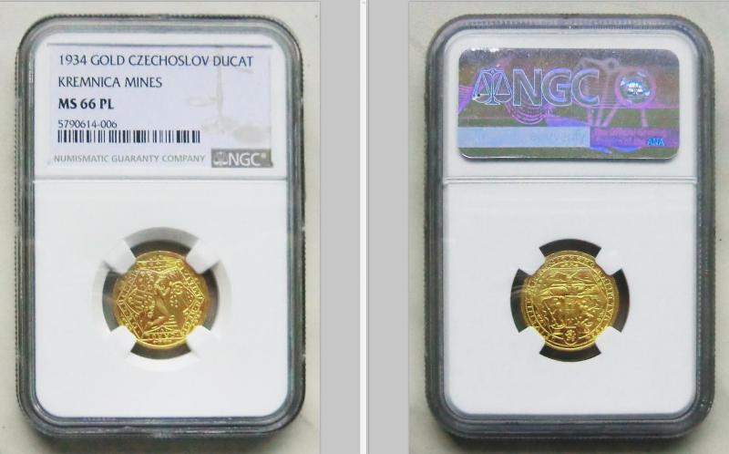 Originál 1 Dukát 1934, Oživení kremnického bánictva, certifikace NGC MS 66 PL. Au 987 (zlato 23,7 karátů) - 3,50 g - 20 mm - vroubkovaná hrana - mincovna Kremnica - velmi vzácná mince - Rarita - náklad pouze 288 kusů !!! - plný ražební lesk v ploše - certifikace NGC = záruka jakosti a pravosti. Jen 7 těchto mincí má vyšší hodnocení !!! Poštovné po platbě předem 370 Kč, dobírka 450 Kč. Poštovné za dobírku požaduji předem. Možnost osobního převzetí a platby v Bílovci.