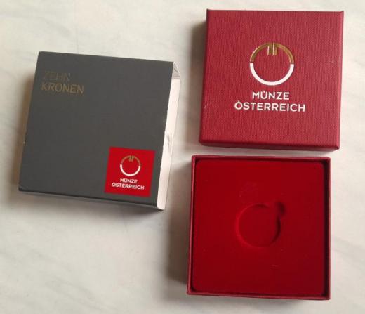 Originální etue na zlatou R-U 10 Korunu z let 1892 - 1915. Etue je vhodná také pro mince s průměrem 19 mm. Poštovné přes Zásilkovnu za 90 Kč nebo Balíkovnu za 70 Kč. Možnost osobního převzetí a platby v Bílovci.