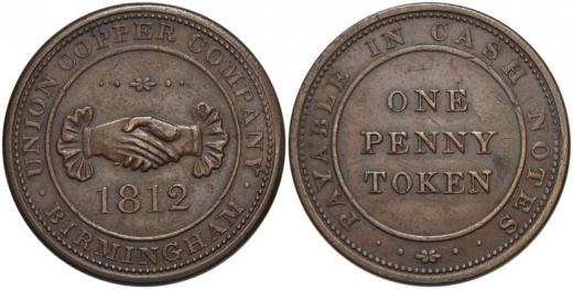 1 penny token 1812. Union copper company / payable in cash notes. Cu 36 mm. Withers-358