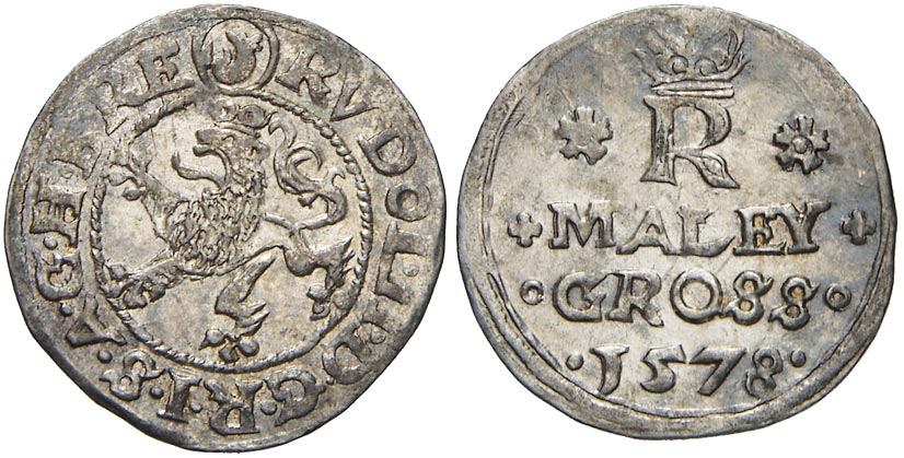 Malý groš 1578 Jáchymov - Kádner, líc provazcovitý kruh. HN-1b, opis 7b