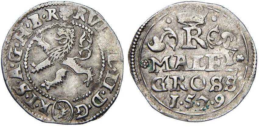 Malý groš 1579 K. Hora - Šatný. HN-2b, opis 7a (.D.G - R.I.)