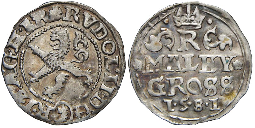 Malý groš 1581 K. Hora - Šatný. HN-2b, opis 7a (.D.G - R.I.)