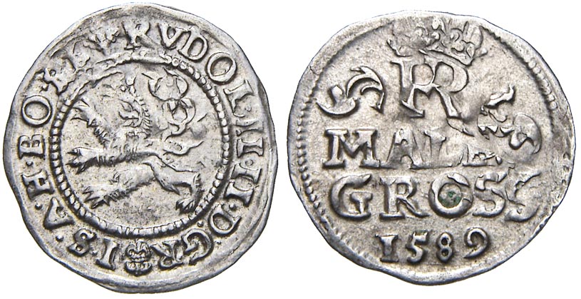 Malý groš 1589 Praha - Ercker. HN-21, opis 6d (:G.R-.I.S.). n. dvojráz