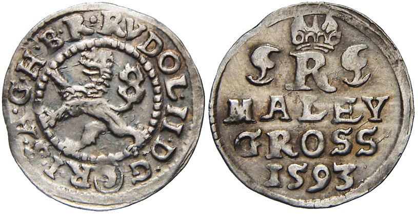Malý groš 1593 Budějovice - Mattighofer. HN-28a,opis 7a (.D:G - R.I.)