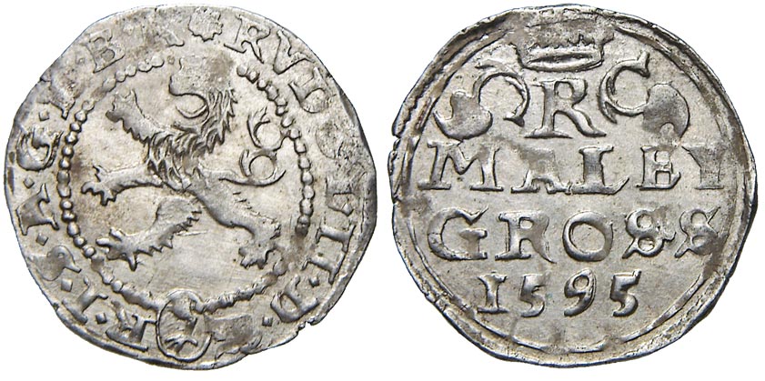 Malý groš 1595 K. Hora - Herold. HN-8, opis 7a (.D.G - R.I.)