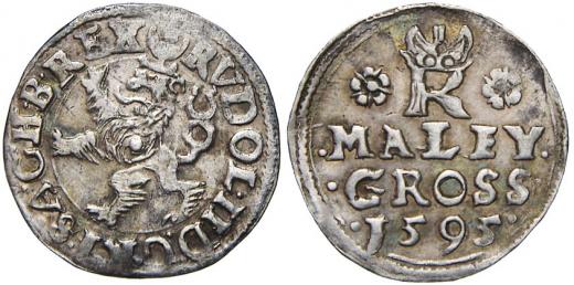 Malý groš 1595 Jáchymov - Hoffmann. HN-8b, opis 7c (RVDOL.II D:G.)