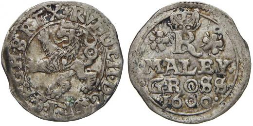 Malý groš 1600 Jáchymov - Taubenreutter. HN-9, opis 7c, starý podložní štítek. n. nedor.