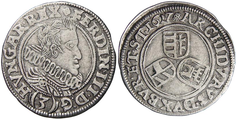 3 krejcar 1627 b.zn. Kladsko. MKČ-neuvádí, Nech.-neuvádí. nedor.