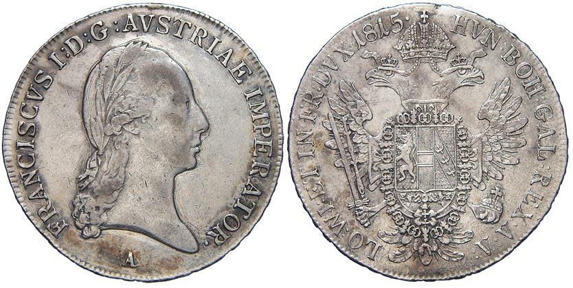 1/2 tolar konv. 1815 A. Nov.-57. dr. škr. na líci, n. st. po o.