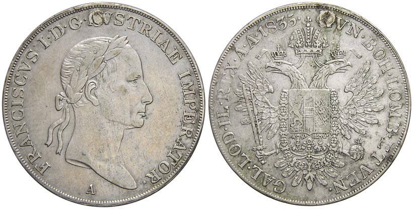 1/2 tolar 1835 A. Nov.-61. zaletovaná dírka