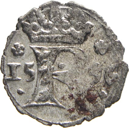 Malý černý peníz 1596 K. Hora - Herold. MKČ-385. dr. nedor.
