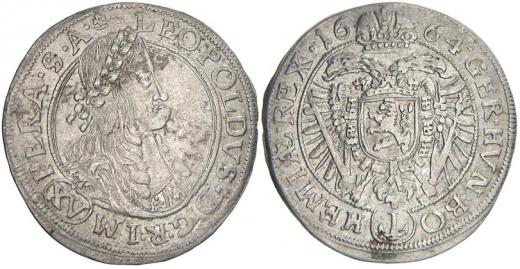 XV krejcar 1664 kotva Praha - Margalík (L: LEOPOLDUS.D.G.R.IM.). Nech.-146