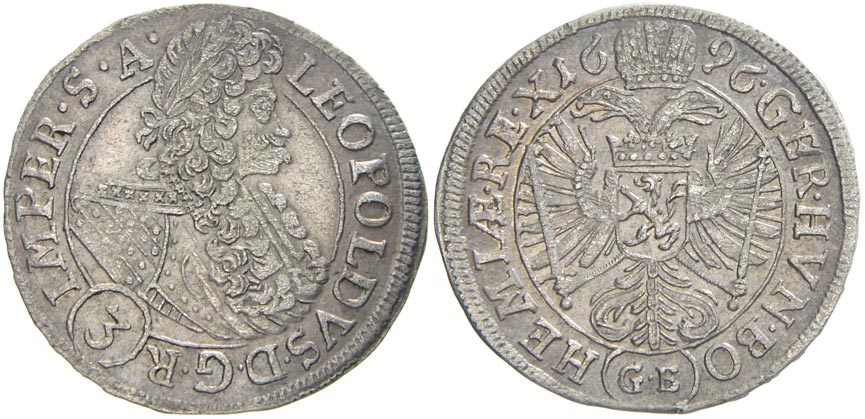 3 krejcar 1696 GE Praha - Egerer (široký portrét). Nech.-205