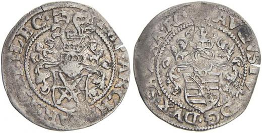 August (1553-86). Činžovní groš 1563. nedor., naprask.