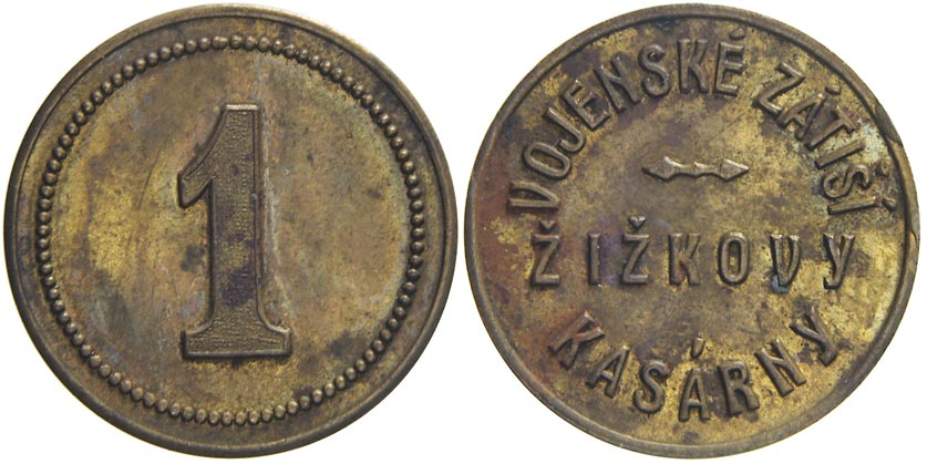 České Budějovice (okr. Č. Budějovice). Vojenské zátiší Žižkovy kasárny / hodnota 1. Mosaz 22.4 mm