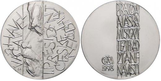 Václav Havel. Portrét, nápisy / heslo, zn. výrobce a rok 1998. Ag (punc. na hraně) 40 mm (29.17 g), čísl. na hraně (č. 3), plexi pouzdro, etue