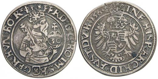1/2 zlatník (30 krejcar) 1564 Jáchymov - Geitzkofler (11,86 g). MKČ-145a. Chaurova značka. n. naprask. hr.