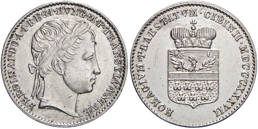 Holdování v Sedmihradsku v Sibini 1837. Malý Ag žeton 18 mm. Novák-V/XVIII/E3b. n. škr.