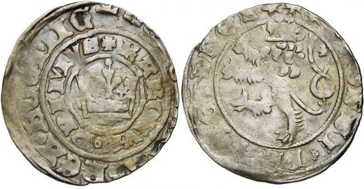 Karel IV. (1346-78). Pražský groš (3,42 g), přechodný typ. Ves.-3/4. excentr., n. nedor.