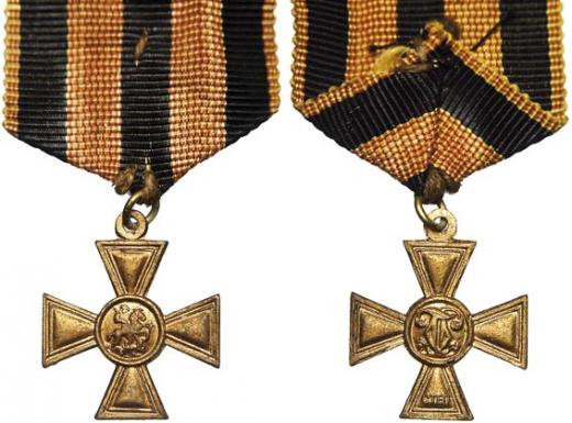 Vojenský kříž sv. Jiří bez ozn. stupně, bez č., pražské vydání - MINIATURA. Červ. bronz, pův. dlouhá stuha