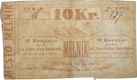 Mělník. 10 krejcar (1849). Petrtyl-2, Vostal-840.16.P03. dobový padělek