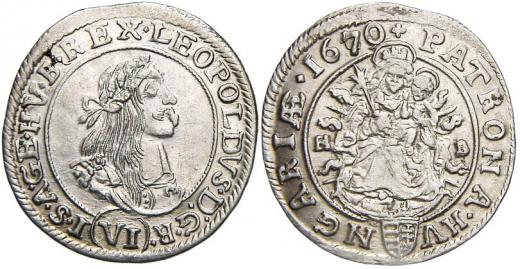 VI krejcar 1670 KB (přerýv. razidlo z r. 1669). Nech.-1191