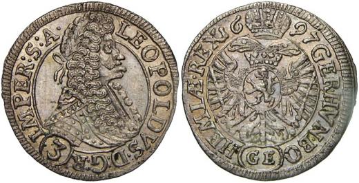 3 krejcar 1697 GE Praha - Egerer. Nech.-208