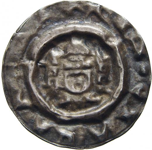 Brakteát (26 mm) s opisem. Cach-816. dr. pomačkán, patina