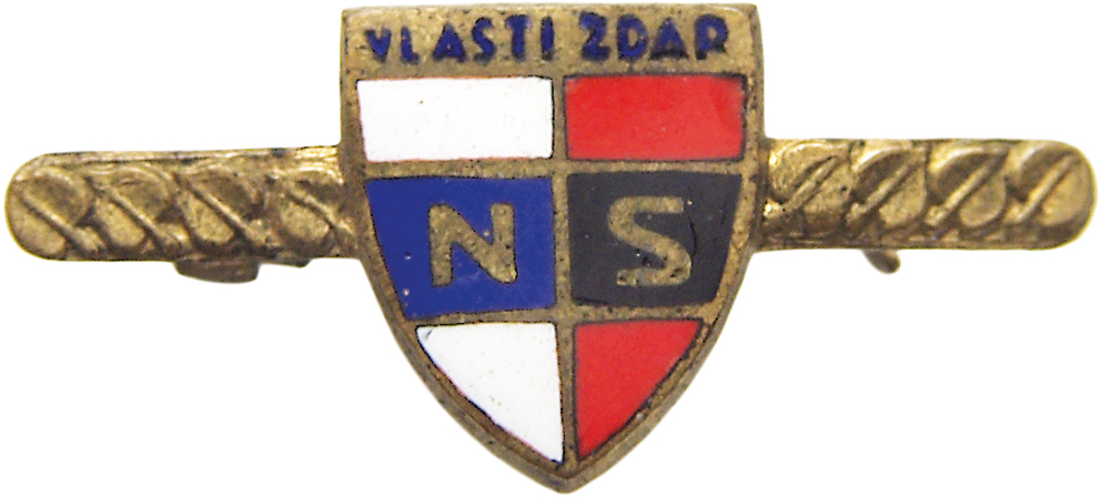 Národní souručenství - odznak pro funkcionáře. Bronz 15 x 33,5 mm, smalty, spona