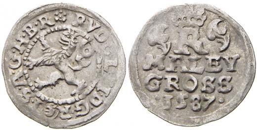 Malý groš 1587 Č. Budějovice - Mattighofer. HN-23, opis 9. n. nedor.