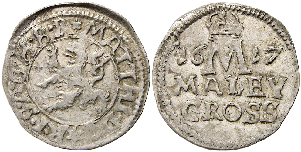 Malý groš 1617 K. Hora - Hölzl. HN-4a, opis 3a