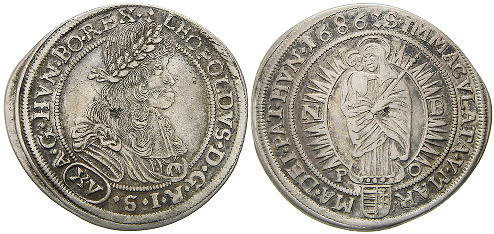 XV krejcar 1686 NB / PO. Nech.-1538. zcela n. vada mat. R