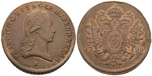 Cu 3 krejcar 1799 A. Nov.-11. zcela n. hr., n. excentr. R