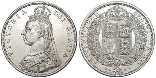 1/2 crown 1887. KM-764. vlas. rysky