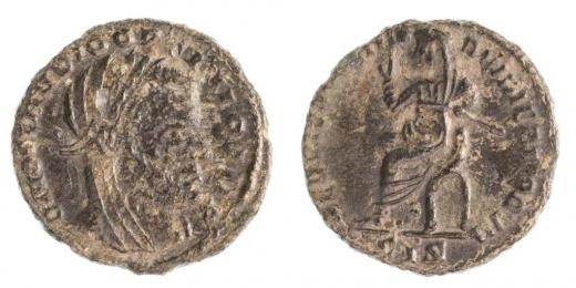 Claudius II. Posmrtná ražba za Constantina I.307-337 AE3 R:sedící Claudius RIC.298