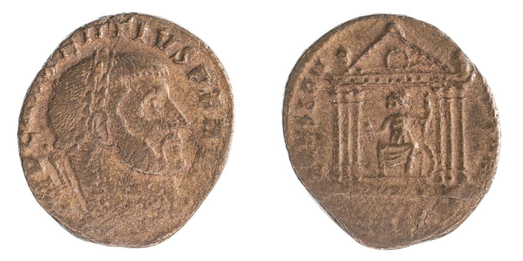 Maxentius 306-312 follis R:Roma v chrámu Sear 3679