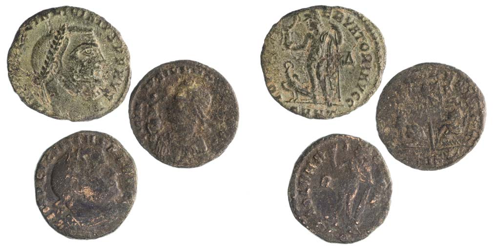 Licinius I.-Licinius II. Follis,AE3 R:Jupiter,Sol,zajatci u praporu 3ks