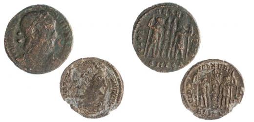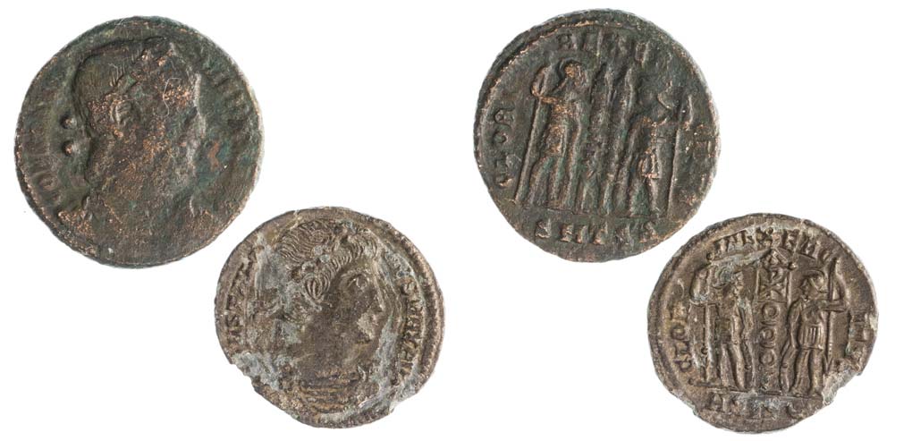 Constantinus I.307-337 AE3-4 R:dva vojáci jedna a dvě standarty Siscia,Tessalonica 2ks