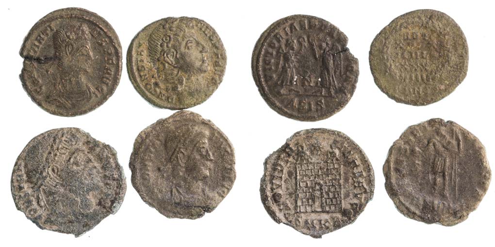 Constantius II. 337-361AE3 R:císař,věnec,brána,dvě Victorie 4ks