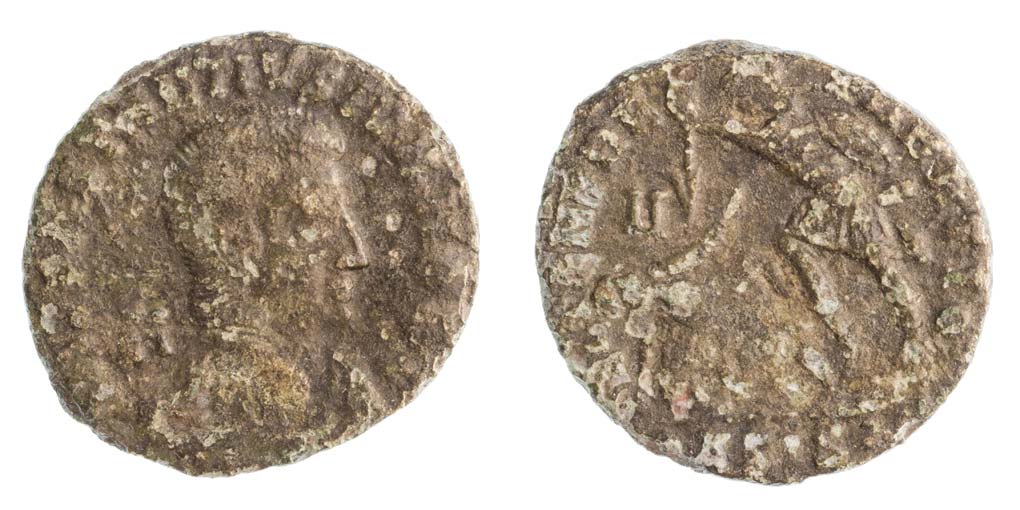 Constantius Gallus 351-354 maiorina R:vojín poráží jezdce Siscia RIC.303