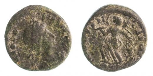 Theodosius I. 379-395 AE4 R:císař a zajatec