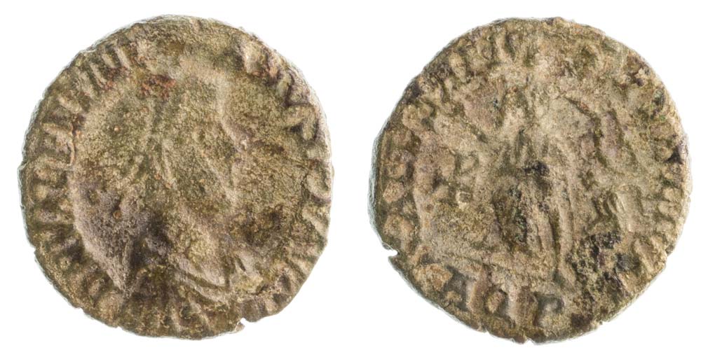 Valentinianus II.375-392 AE4 R.Victoria a zajatec Aquileia RIC.58a