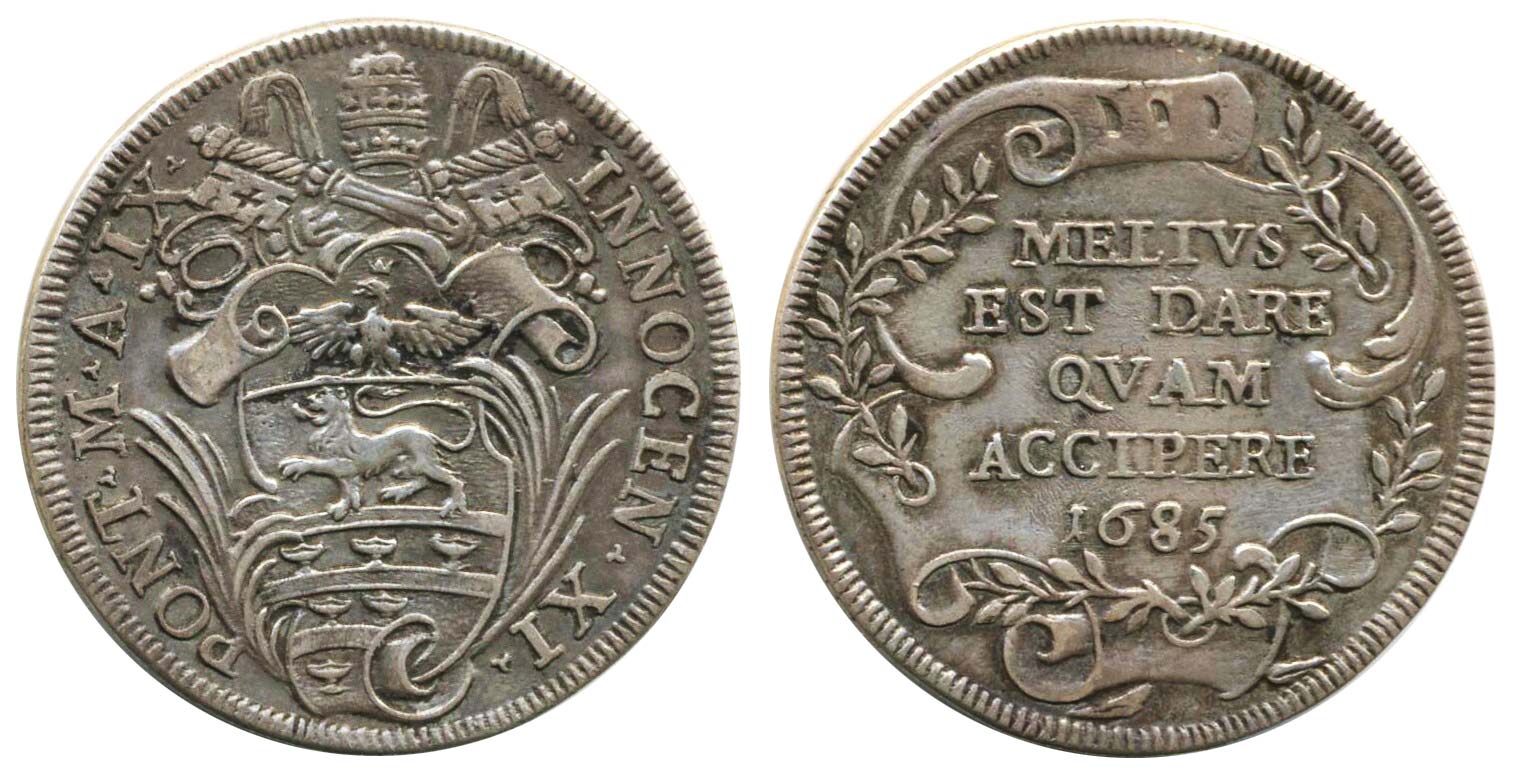 Vatikán, Inocenc XI. 1676 - 1689 AR 1/4scudo - Teston 1685 KM.470 sbírkový