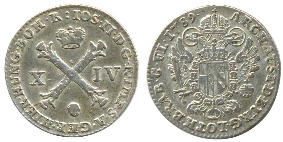 Josef II. 1765 - 1790,14liard 1789 Brusel