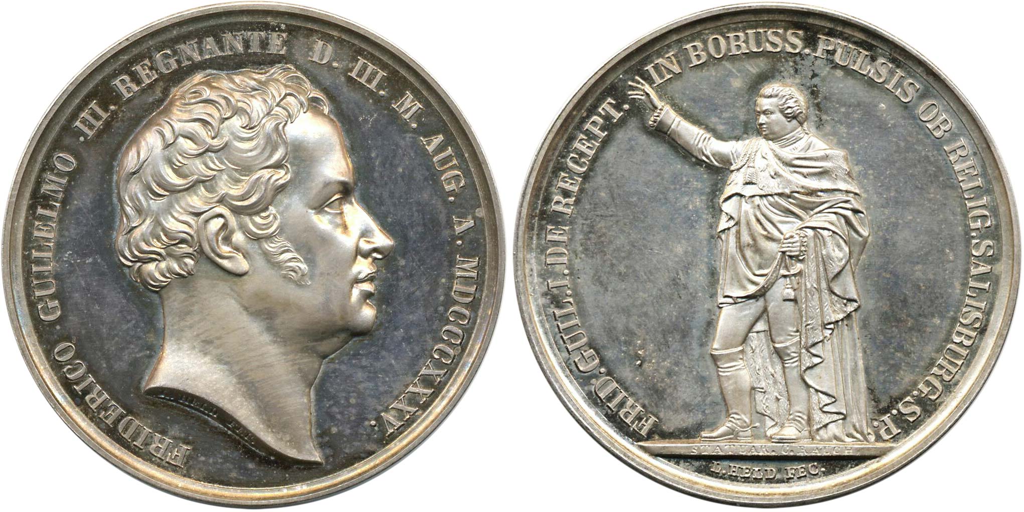 Prusko, Fridrich Vilém III. 1797-1840, portrét zpr./stojící císař zleva 1835, L.Held, Ag med. 42mm sbírkový